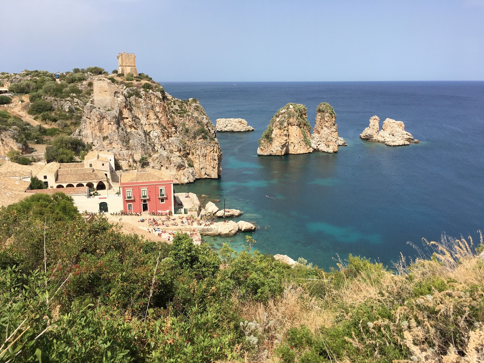 Descendo para junto ao mar, encontra-se o outro elemento apontado no bloco de notas, a espantosamente fotogênica Spiaggia dei Faraglioni e a sua tonnara.